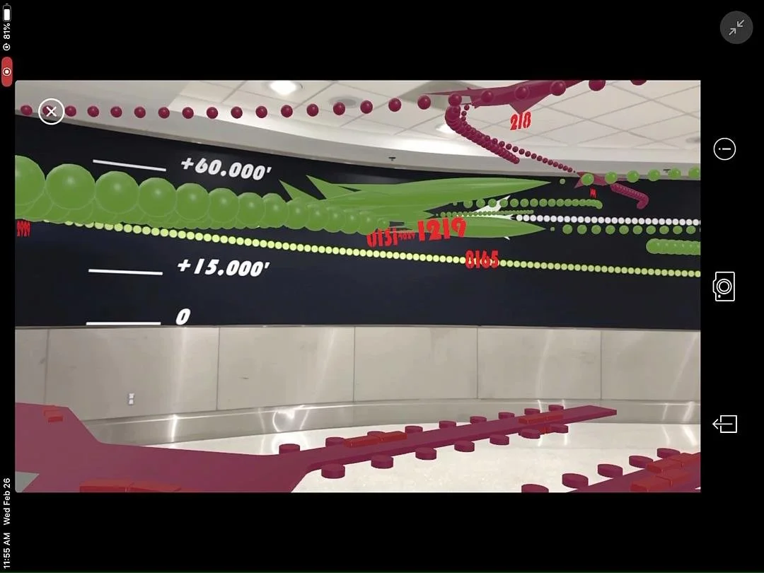 In the exhibition IM/Movable Assets, artist Felice Grodin uses augmented reality (AR) to explore what an experience might be at Miami International Airport (MIA) in 500 years post-climate change. Can this be a future prototype of an immovable asset such as an airport? These four questions served as prompts:
